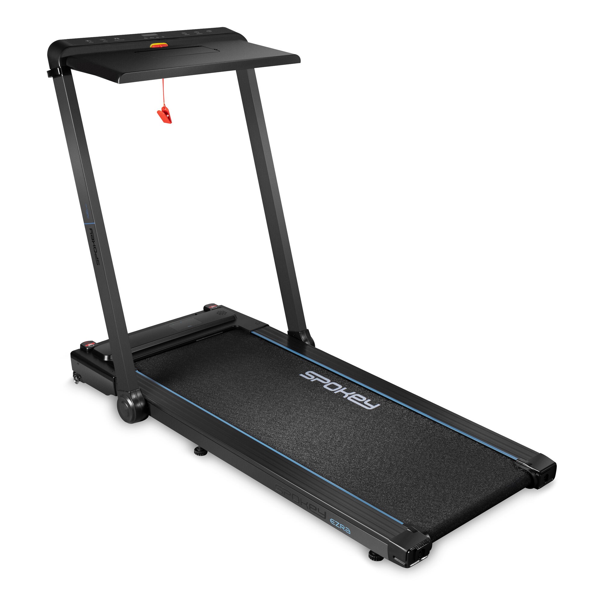 Bieżnia EZRA wyposażona jest w zintegrowane biurko na laptopa, tablet lub smartfon, co pozwala na łączenie treningu z pracą lub rozrywką, taką jak oglądanie filmów lub seriali. Posiada także klucz bezpieczeństwa, który należy przypiąć do swojego ubrania w trakcie każdego treningu.