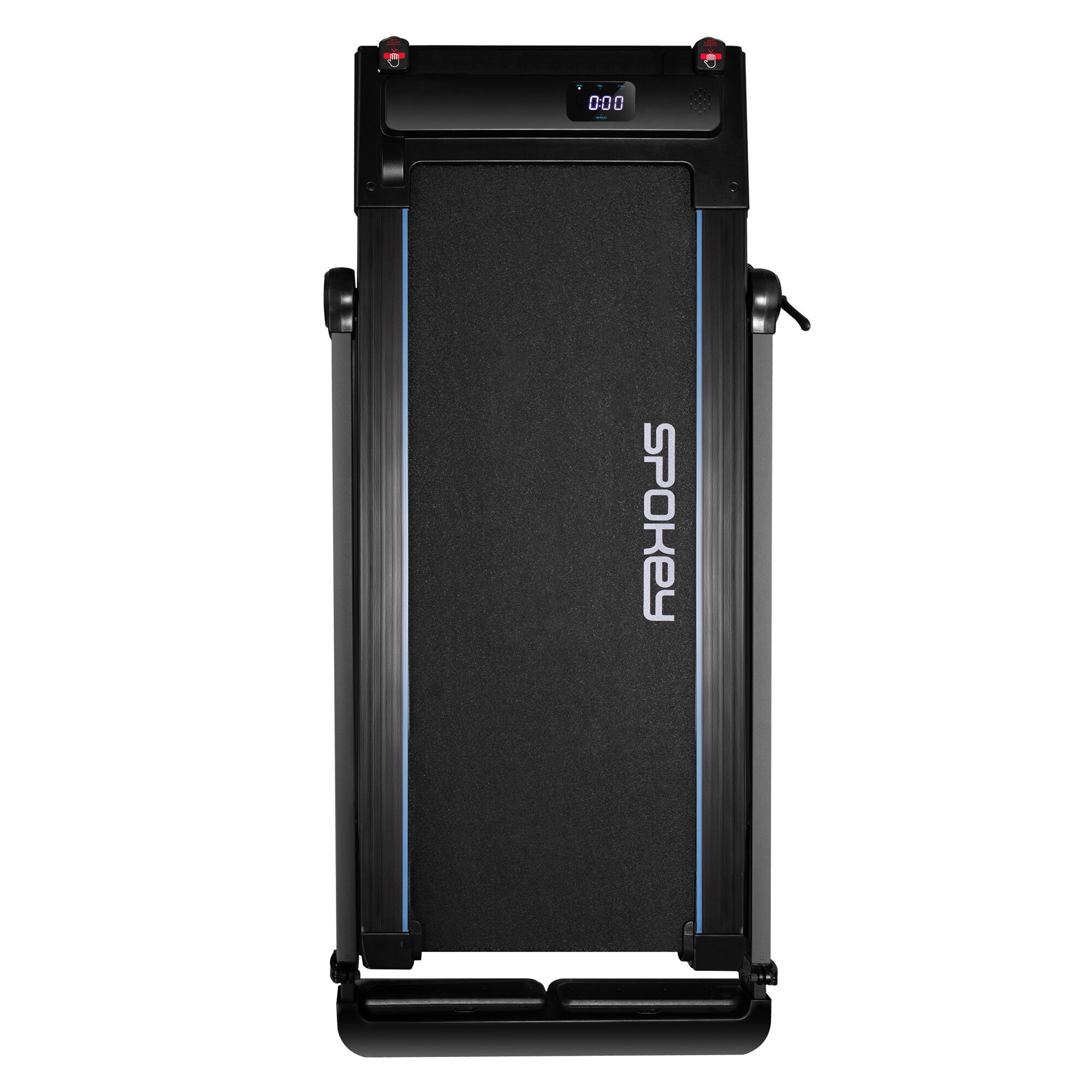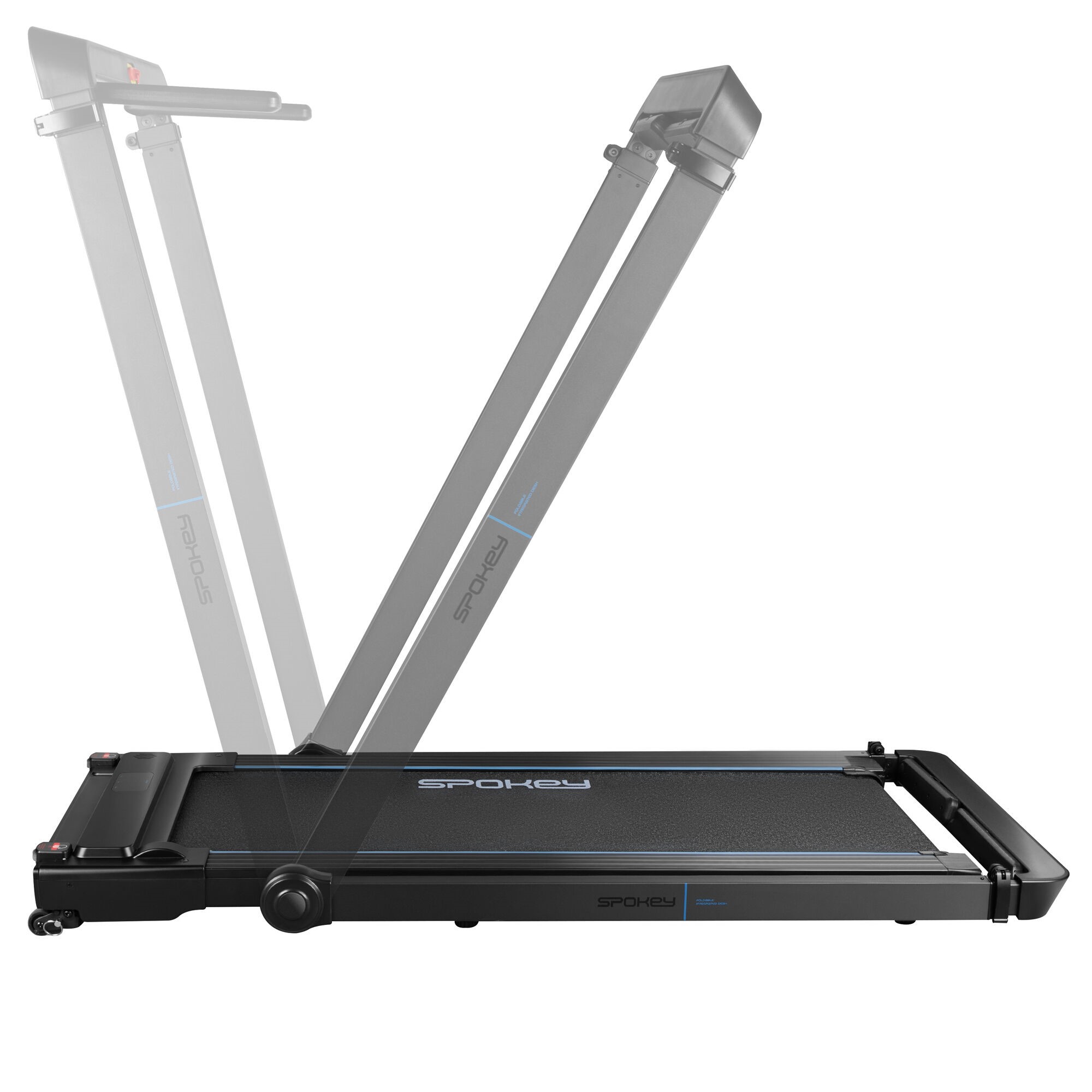 Bieżnia elektryczna EZRA to innowacyjne rozwiązanie, które za sprawą biurka pozwala łączyć trening z korzystaniem z laptopa, tabletu lub smartfona. Dzięki temu możesz maszerować lub biegać, jednocześnie oglądając swój ulubiony serial lub biorąc udział w spotkaniu biznesowym online. Mocny silnik 1,5 HP umożliwia osiągnięcie prędkości do 14 km/h, co pozwala na intensywne sesje treningu biegowego. Dodatkowo, dwustopniowa regulacja nachylenia i 12 programów treningowych umożliwiają różnorodne i spersonalizowane treningi. Bieżnia EZRA została wyposażona w antypoślizgowy podest, regulowane słupki pionowe oraz klucz bezpieczeństwa, które zapewniają bezpieczeństwo i komfort użytkowania. Kółka pozwalają natomiast na łatwy transport bieżni.