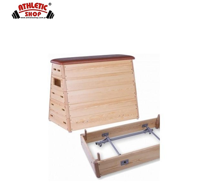 Skrzynie gimnastyczne POLSPORT od wielu lat używane są do wykonywania ćwiczeń ogólnorozwojowych. Segmenty skrzyń wykonane są z drewna iglastego lub sklejki. Górny segment stanowi płyta wiórowa gr.18 mm, mata włókna kokosowego gr.40 mm, pianka PV 15 mm pokryta sztuczną lub naturalną skórą. W drugim segmencie od góry w szczycie znajduje się otwór umożliwiający zaczepienie ławki.Wymiary skrzyni 5-segmentowej :